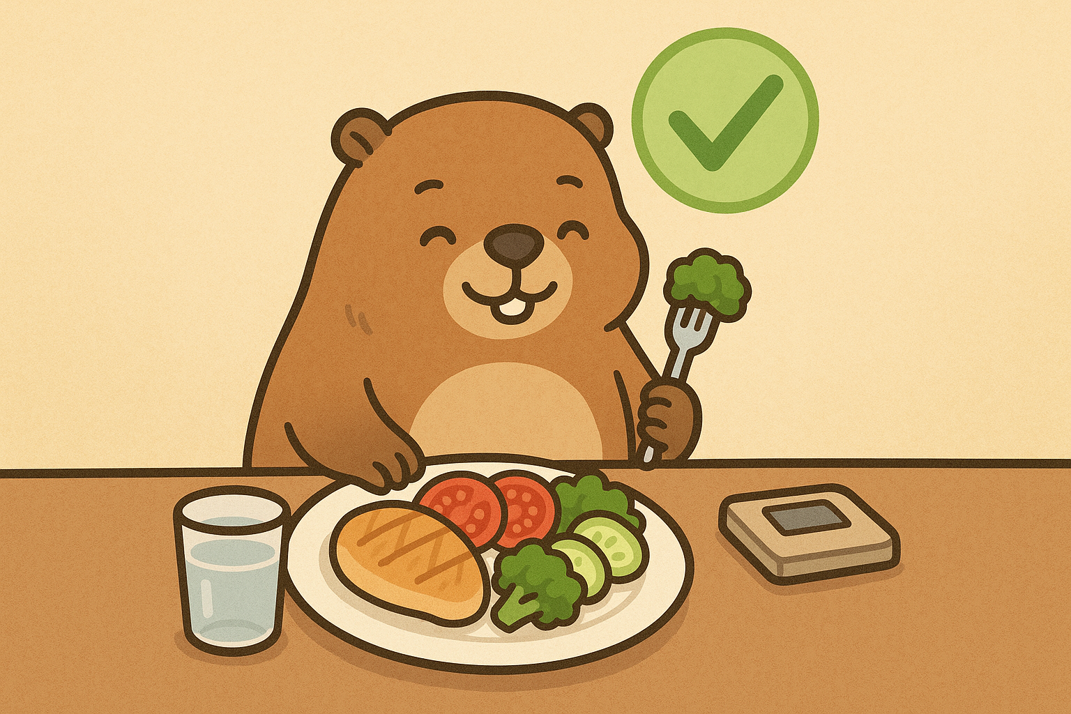 | 昼(12:00) | 血糖安定・エネルギー補給 | 野菜→タンパク質→ゆる糖質 |